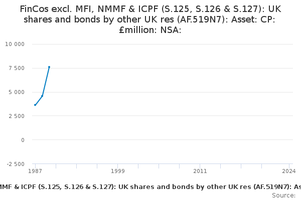 Download this time seriesFinCos excl. MFI, NMMF & ICPF (S.125, S.126 & S.127): UK shares and bonds by other UK res (AF.519N7): Asset: CP: £million: NSA: