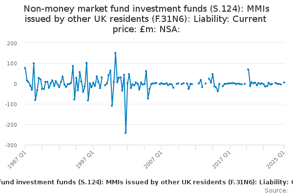 Download this time seriesNon-money market fund investment funds (S.124): MMIs issued by other UK residents (F.31N6): Liability: Current price: £m: NSA: