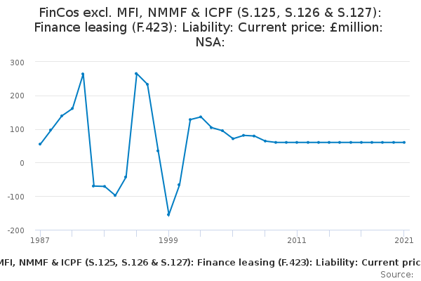 Download this time seriesFinCos excl. MFI, NMMF & ICPF (S.125, S.126 & S.127): Finance leasing (F.423): Liability: Current price: £million: NSA: