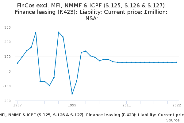 Download this time seriesFinCos excl. MFI, NMMF & ICPF (S.125, S.126 & S.127): Finance leasing (F.423): Liability: Current price: £million: NSA: