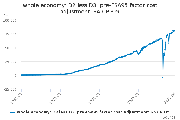 Download this time serieswhole economy: D2 less D3: pre-ESA95 factor cost adjustment: SA CP £m