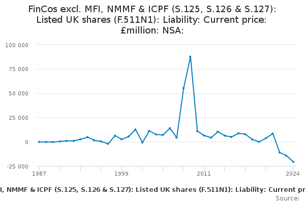 Download this time seriesFinCos excl. MFI, NMMF & ICPF (S.125, S.126 & S.127): Listed UK shares (F.511N1): Liability: Current price: £million: NSA: