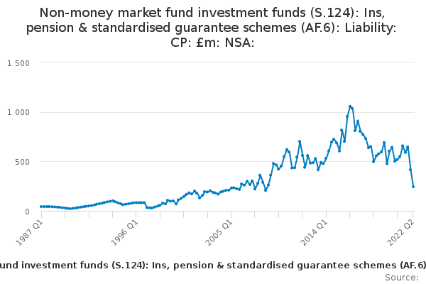 Download this time seriesNon-money market fund investment funds (S.124): Ins, pension & standardised guarantee schemes (AF.6): Liability: CP: £m: NSA: