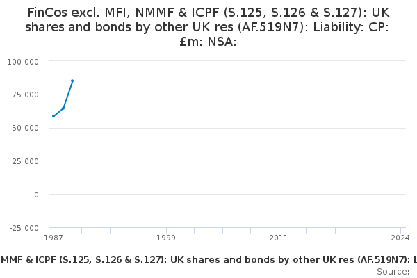 Download this time seriesFinCos excl. MFI, NMMF & ICPF (S.125, S.126 & S.127): UK shares and bonds by other UK res (AF.519N7): Liability: CP: £m: NSA: