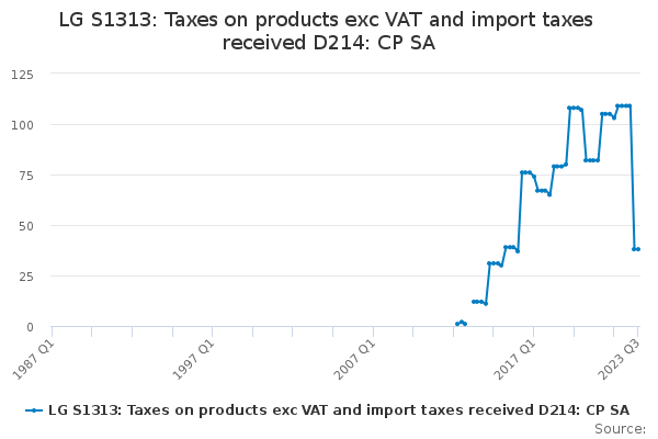 Download this time seriesLG S1313: Taxes on products exc VAT and import taxes received D214: CP SA