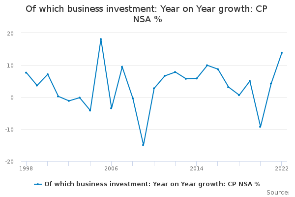 Download this time seriesOf which business investment: Year on Year growth: CP NSA %