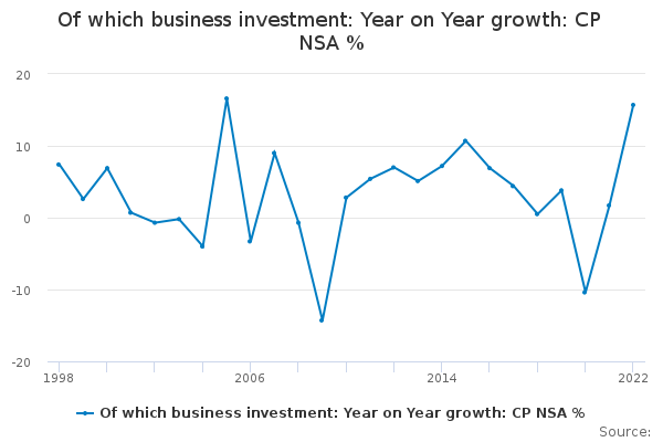 Download this time seriesOf which business investment: Year on Year growth: CP NSA %