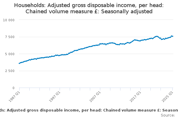 Download this time seriesHouseholds: Adjusted gross disposable income, per head: Chained volume measure £: Seasonally adjusted