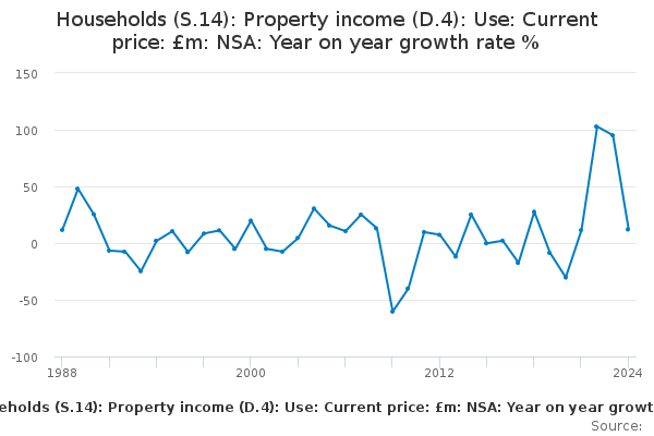 Download this time seriesHouseholds (S.14): Property income (D.4): Use: Current price: £m: NSA: Year on year growth rate %