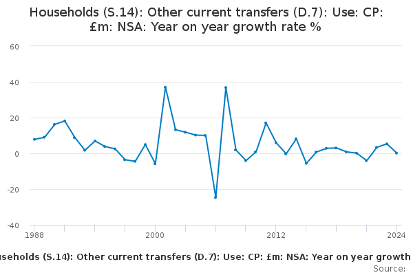 Download this time seriesHouseholds (S.14): Other current transfers (D.7): Use: CP: £m: NSA: Year on year growth rate %