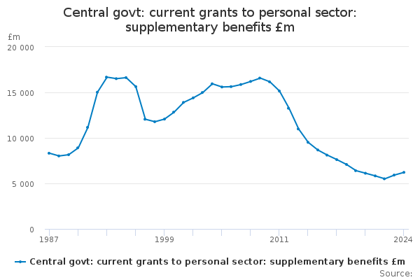 Download this time seriesCentral govt: current grants to personal sector: supplementary benefits £m