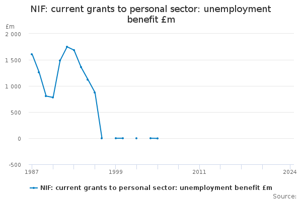 Download this time seriesNIF: current grants to personal sector: unemployment benefit £m