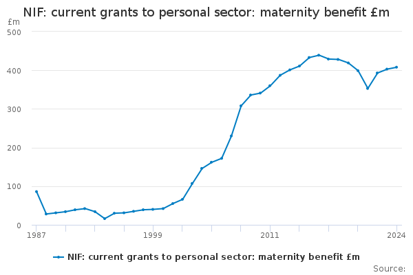 Download this time seriesNIF: current grants to personal sector: maternity benefit £m
