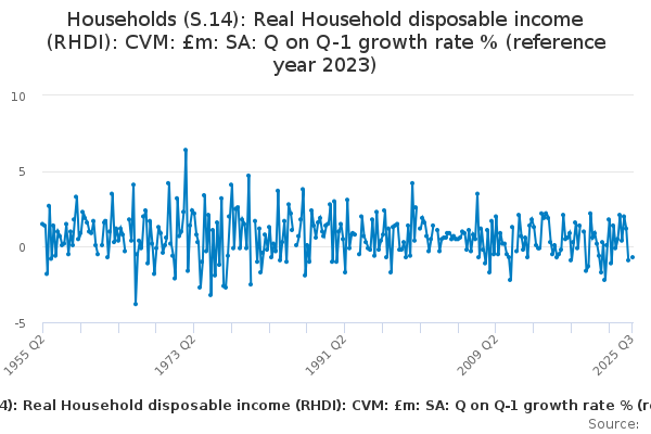 Download this time seriesHouseholds (S.14): Real Household disposable income (RHDI): CVM: £m: SA: Q on Q-1 growth rate % (reference year 2023)