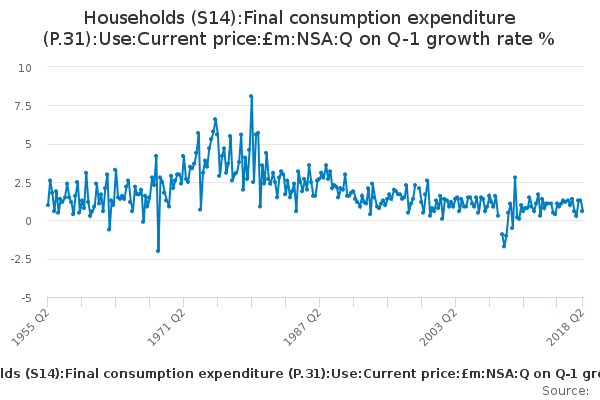 Download this time seriesHouseholds (S14):Final consumption expenditure (P.31):Use:Current price:£m:NSA:Q on Q-1 growth rate %