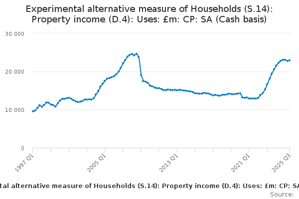 Download this time seriesExperimental alternative measure of Households (S.14): Property income (D.4): Uses: £m: CP: SA (Cash basis)