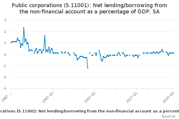 Download this time seriesPublic corporations (S.11001): Net lending/borrowing from the non-financial account as a percentage of GDP: SA