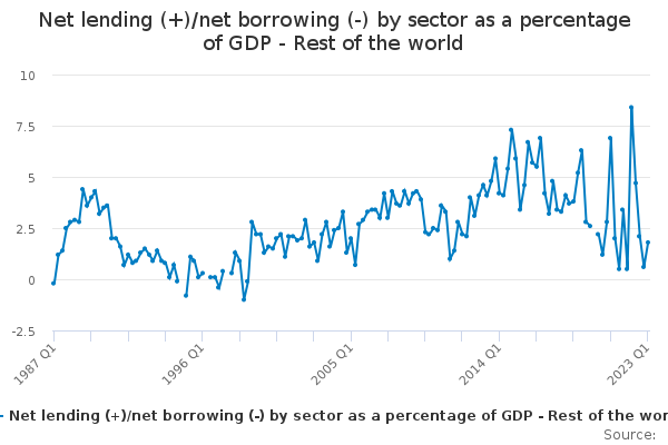 Download this time seriesNet lending (+)/net borrowing (-) by sector as a percentage of GDP - Rest of the world