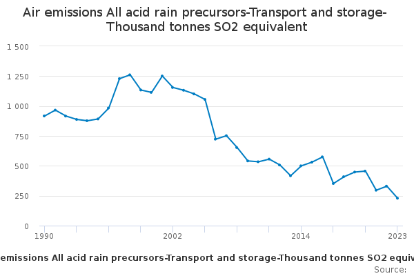 Download this time seriesAir emissions All acid rain precursors-Transport and storage-Thousand tonnes SO2 equivalent