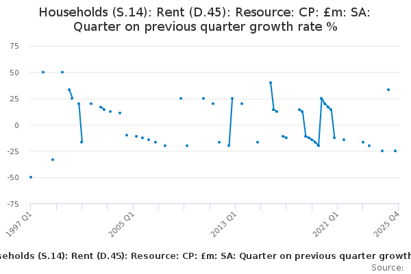 Download this time seriesHouseholds (S.14): Rent (D.45): Resource: CP: £m: SA: Quarter on previous quarter growth rate %
