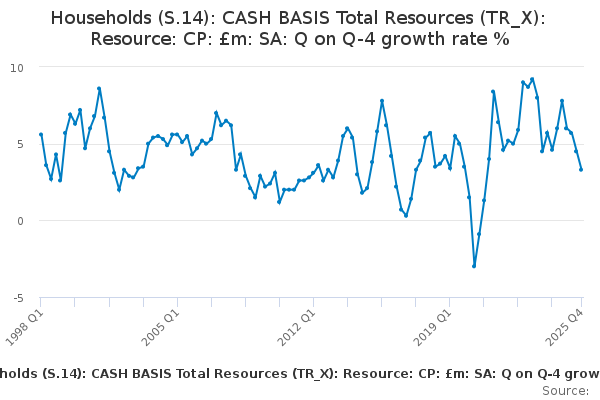 Download this time seriesHouseholds (S.14): CASH BASIS Total Resources (TR_X): Resource: CP: £m: SA: Q on Q-4 growth rate %