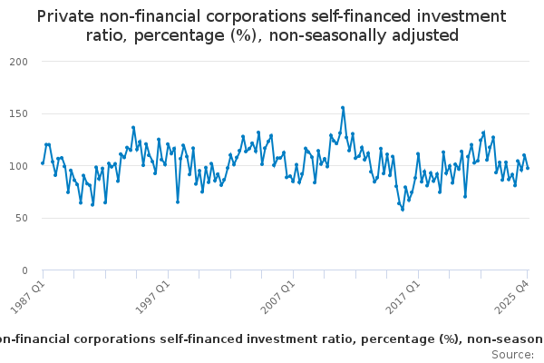 Download this time seriesPrivate non-financial corporations self-financed investment ratio, percentage (%), non-seasonally adjusted