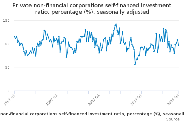 Download this time seriesPrivate non-financial corporations self-financed investment ratio, percentage (%), seasonally adjusted