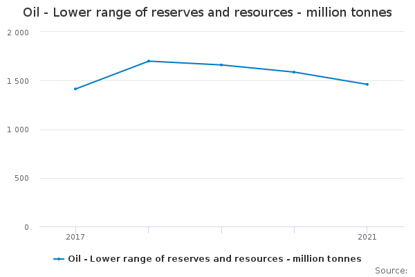 Download this time seriesOil - Lower range of reserves and resources - million tonnes