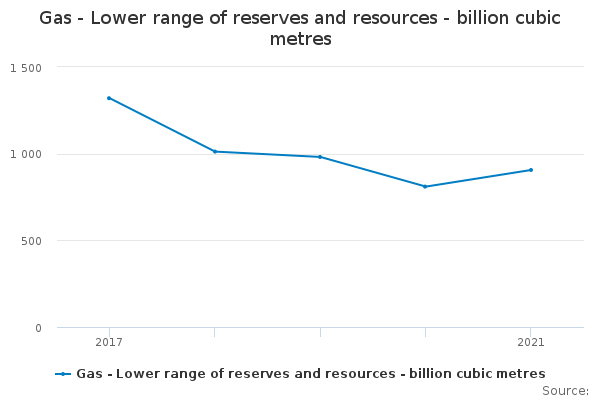 Download this time seriesGas - Lower range of reserves and resources - billion cubic metres