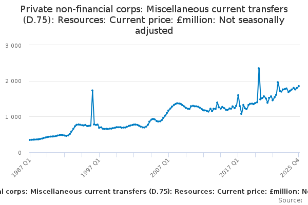 Download this time seriesPrivate non-financial corps: Miscellaneous current transfers (D.75): Resources: Current price: £million: Not seasonally adjusted