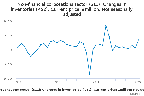 Download this time seriesNon-financial corporations sector (S11): Changes in inventories (P.52): Current price: £million: Not seasonally adjusted