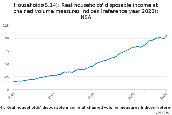 Download this time seriesHouseholds(S.14): Real households' disposable income at chained volume measures Indices (reference year 2023): NSA