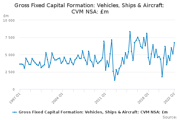 Download this time seriesGross Fixed Capital Formation: Vehicles, Ships & Aircraft: CVM NSA: £m