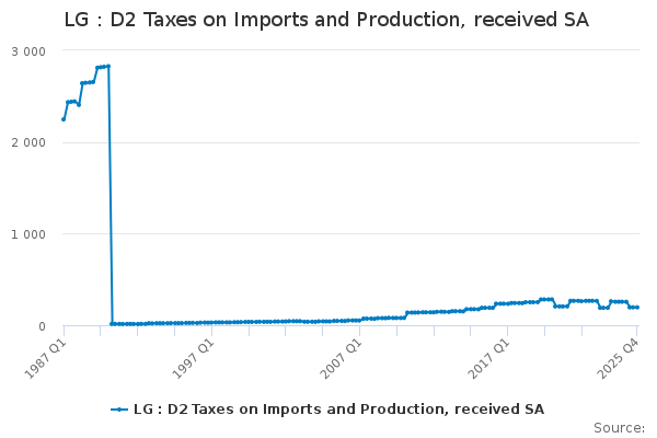 Download this time seriesLG : D2 Taxes on Imports and Production, received SA