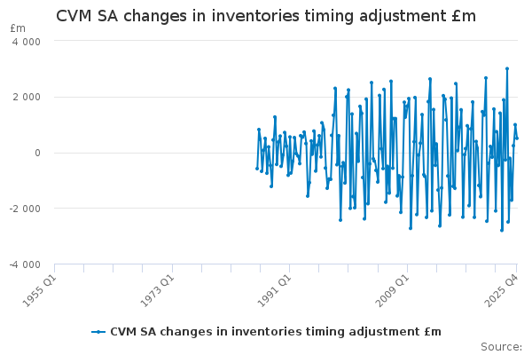 Download this time seriesCVM SA changes in inventories timing adjustment £m