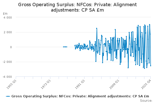 Download this time seriesGross Operating Surplus: NFCos: Private: Alignment adjustments: CP SA £m