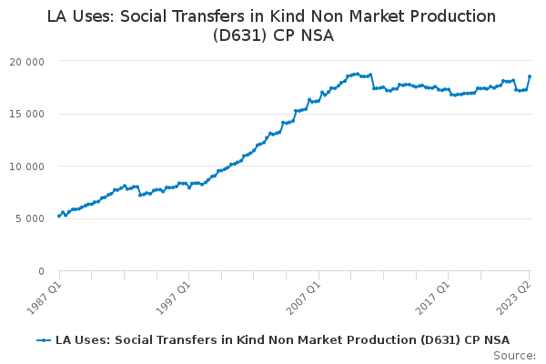 Download this time seriesLA Uses: Social Transfers in Kind Non Market Production (D631) CP NSA