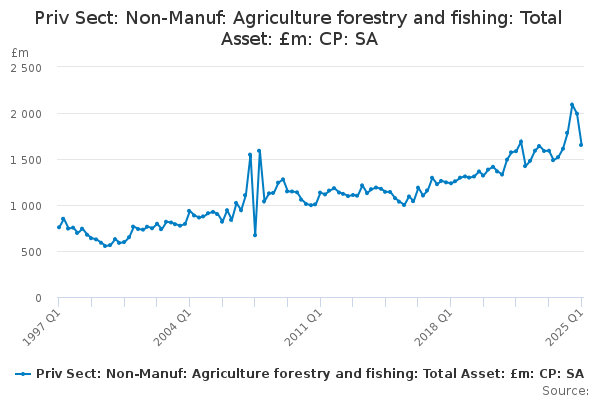 Download this time seriesPriv Sect: Non-Manuf: Agriculture forestry and fishing: Total Asset: £m: CP: SA