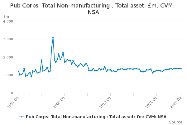 Download this time seriesPub Corps: Total Non-manufacturing : Total asset: £m: CVM: NSA