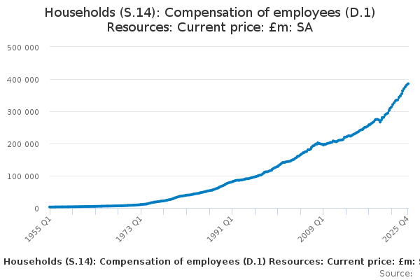 Download this time seriesHouseholds (S.14): Compensation of employees (D.1) Resources: Current price: £m: SA