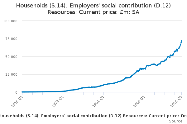 Download this time seriesHouseholds (S.14): Employers' social contribution (D.12) Resources: Current price: £m: SA