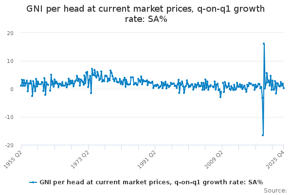 Download this time seriesGNI per head at current market prices, q-on-q1 growth rate: SA%