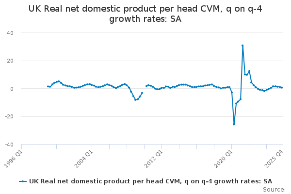 Download this time seriesUK Real net domestic product per head CVM, q on q-4 growth rates: SA