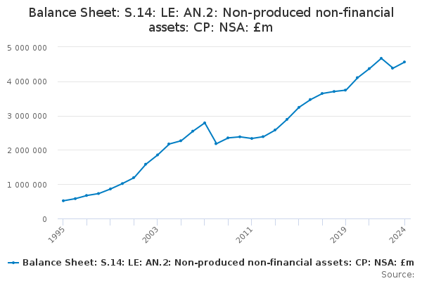 Download this time seriesBalance Sheet: S.14: LE: AN.2: Non-produced non-financial assets: CP: NSA: £m