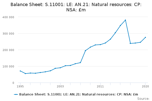 Download this time seriesBalance Sheet: S.11001: LE: AN.21: Natural resources: CP: NSA: £m