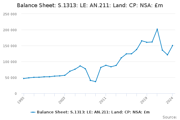 Download this time seriesBalance Sheet: S.1313: LE: AN.211: Land: CP: NSA: £m