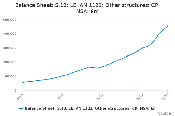 Download this time seriesBalance Sheet: S.13: LE: AN.1122: Other structures: CP: NSA: £m