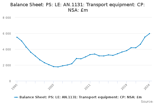 Download this time seriesBalance Sheet: PS: LE: AN.1131: Transport equipment: CP: NSA: £m
