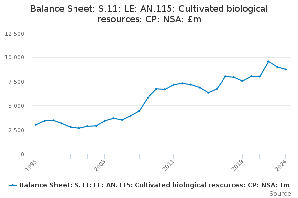 Download this time seriesBalance Sheet: S.11: LE: AN.115: Cultivated biological resources: CP: NSA: £m