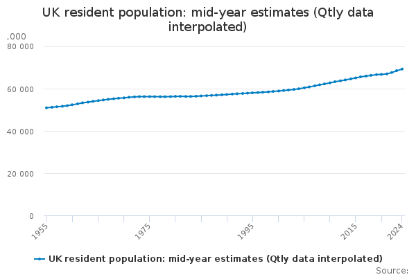 Download this time seriesUK resident population: mid-year estimates (Qtly data interpolated)